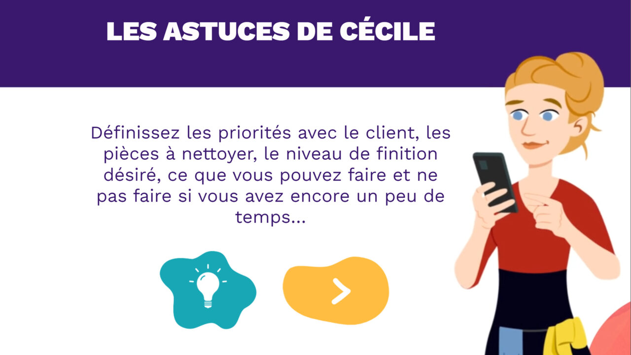 Une web série interactive et immersive. Les participants vivent la journée de Cécile, une jeune fille sympa qui exerce le métier d’aide-ménager(e).
